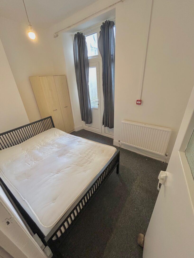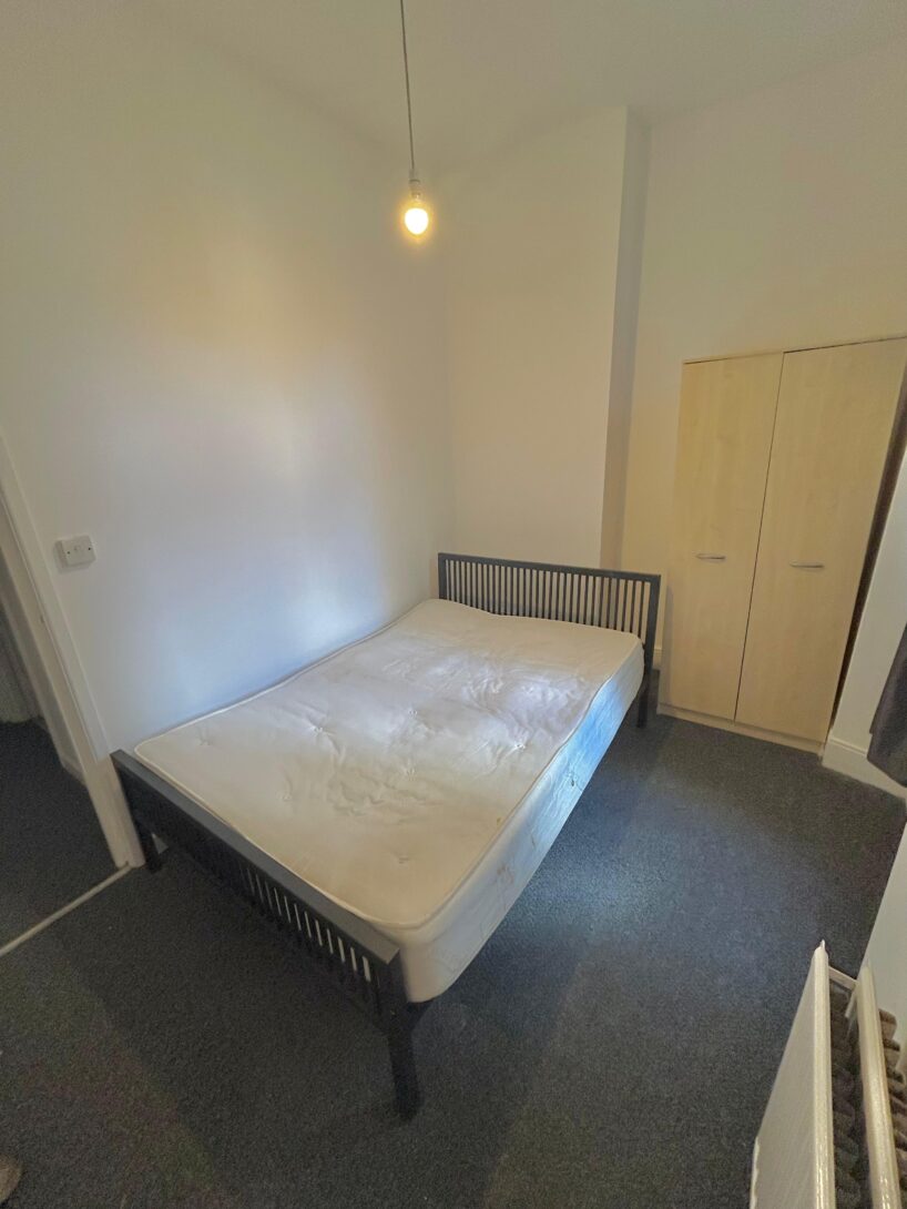 The apartment benefits from an OPEN PLAN kitchen lounge with a huge bay window allowing natural lighting. The living area comes fully furnished with a two-seater sofa and a matching dining set. The modern white kitchen has all essential appliances such as the oven and hob, fridge freezer and washing machine! Across the hall you have the bathroom and bedroom, bedroom fully furnished with double bed, mattress, wardrobe and set of drawers, conveniently there are patio doors opening onto the shared communal garden!